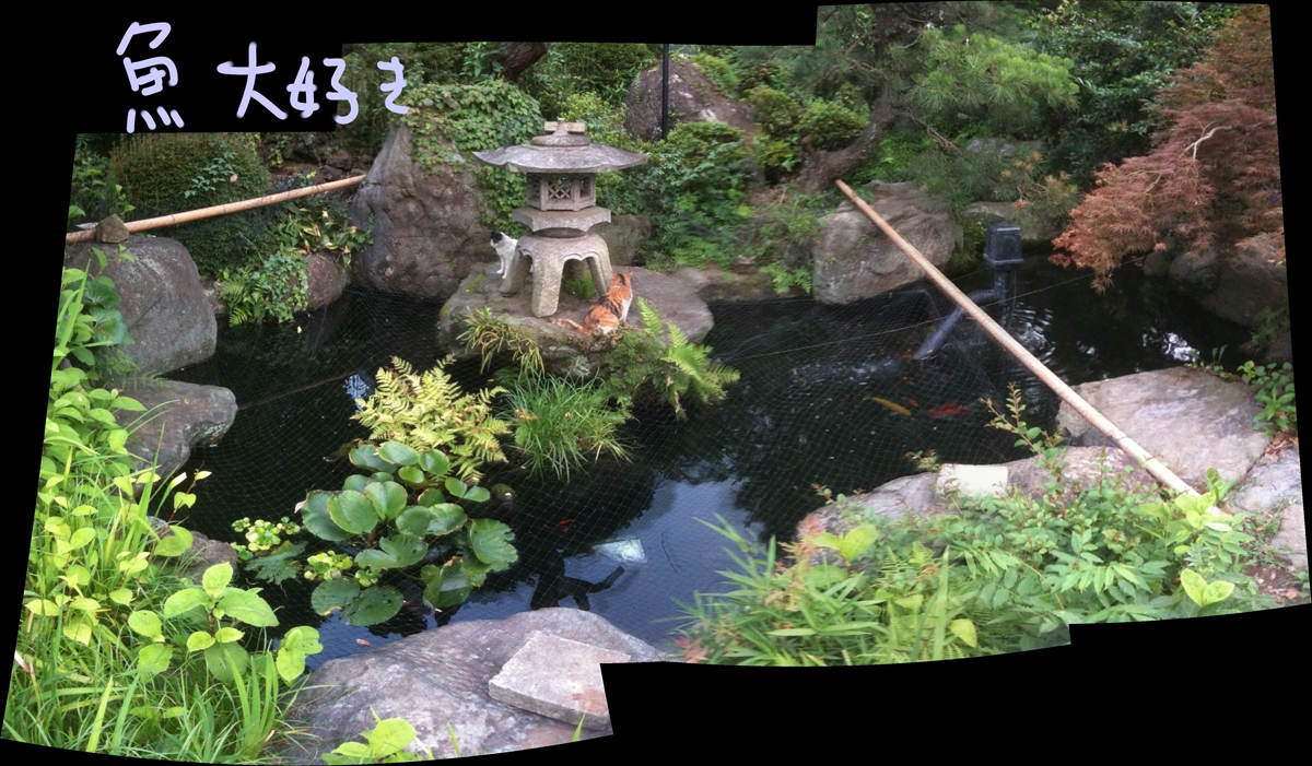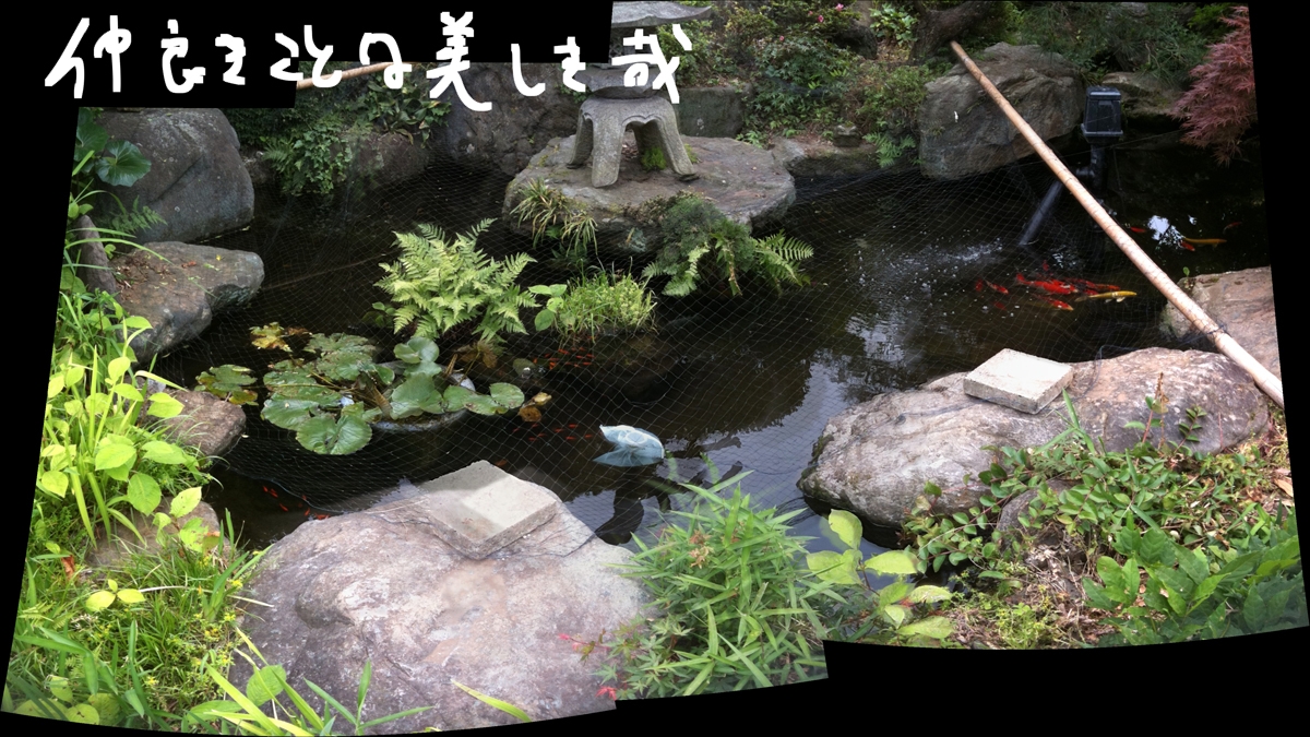 庭の池で