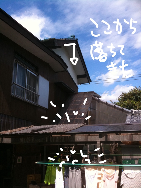 | 台風で瓦 落ちてきました