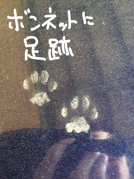 ボンネットに猫の足跡